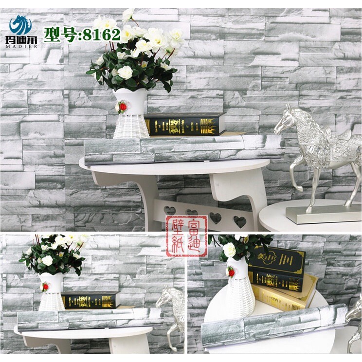 Decal 1m x 45cm Giấy dán tường decor gạch xám trắng BBC22