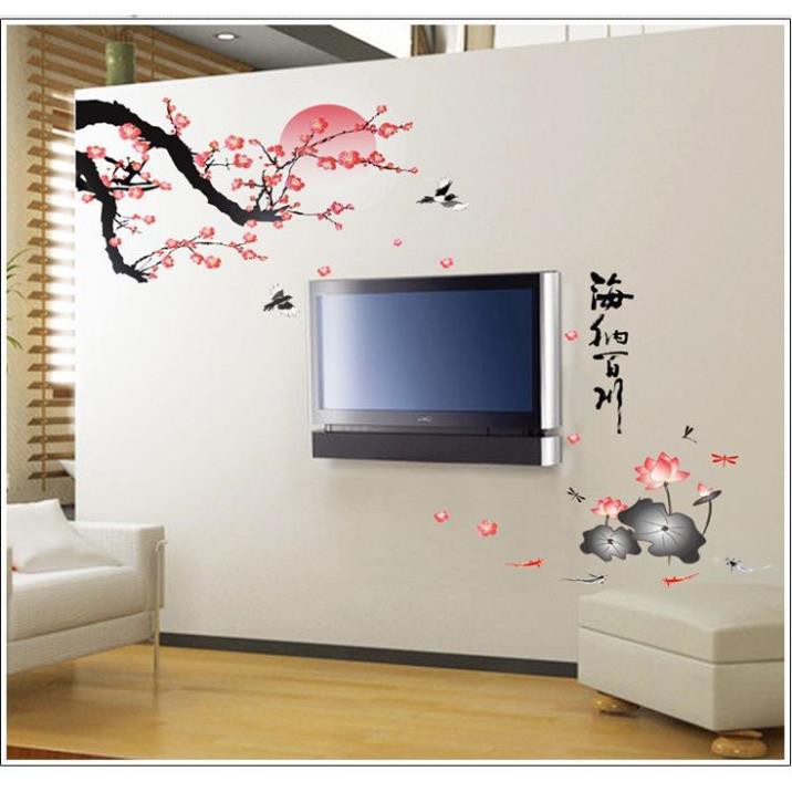Decal dán tường phòng khách Cành đào thư pháp- DH062