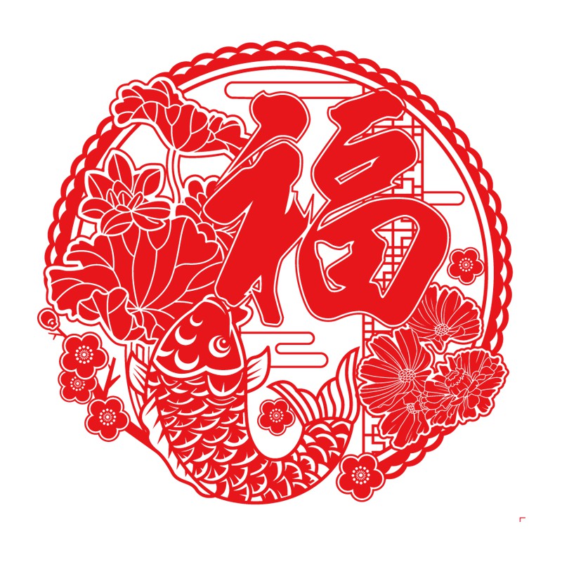 Decal dán tết - Vòng tròn chữ Phúc Cá Chép lớn ánh vàng đỏ loại 1