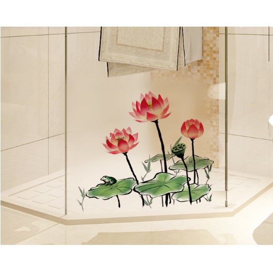 Decal trang trí dán kính cao cấp Búp Sen Hồng