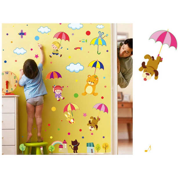 Decal trang trí tường Thú Chơi Dù Vui Nhộn