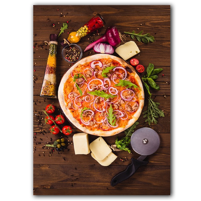 Delicious Tranh Vải Bạt Treo Tường In Hình Pizza Tomato Pepper Tươi Mới Tỏi Mì Pasta Trang Trí Nhà Bếp