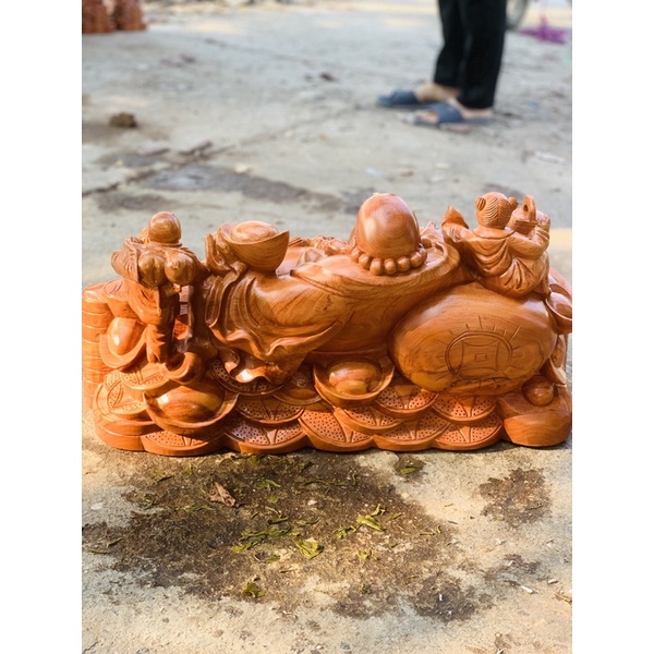 Di lặc ngồi ngũ phúc ngang 60x30x27 . To đẹp dầy dặn . Nguyên khối . Để bàn thì khỏi nghĩ. Nặng khoảng 20-25kg 0966495897