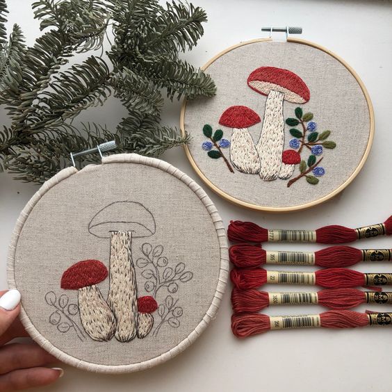 DIy thêu tay thủ công trang trí Hoop NẤM- KIT NGUYÊN LIỆU TỰ THÊU TRANG TRÍ DECO HOME- THÊU CHỮ THẬP- MIE handmade