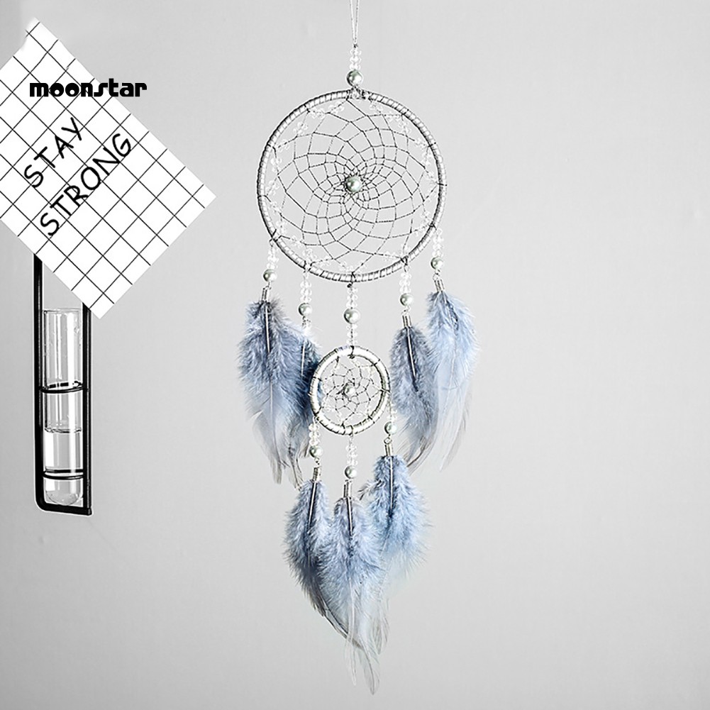 Dreamcatcher bằng sắt đính lông vũ và ngọc trai tinh tế trang trí nội thất