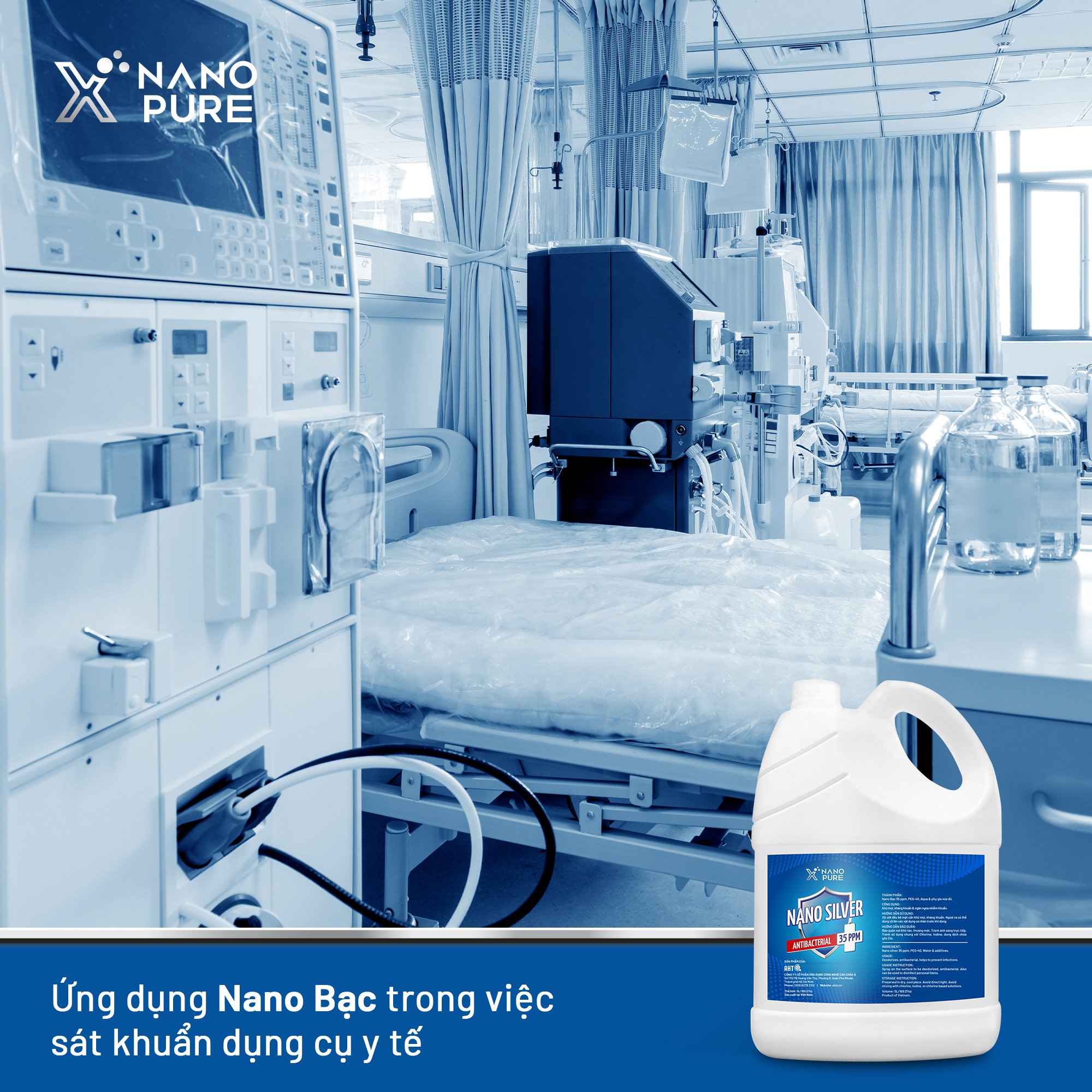 Dung Dịch Nano Xpure Nano Silver Antibacterial 35ppm 5L -Diệt khuẩn, khử mùi–Nano Bạc AHT Corp