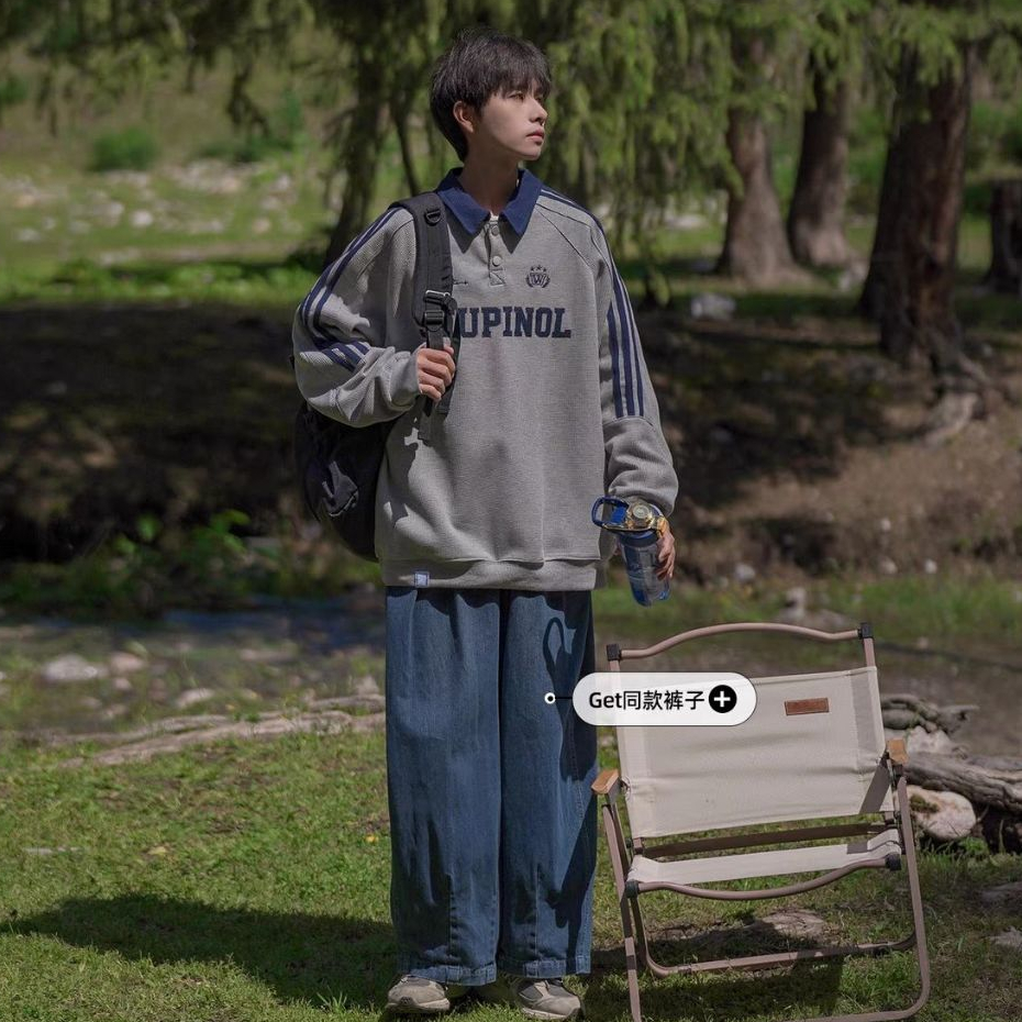 Eershenshi Áo Nỉ Nam Dài Tay Có Cổ Thêu Chữ Phong Cách retro Mỹ Mới Chất Lượng Cao