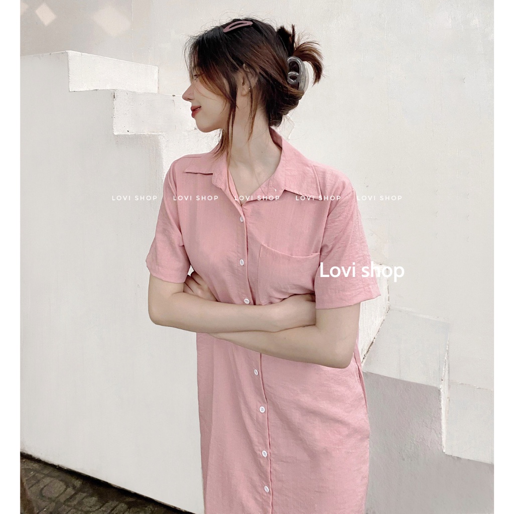 FABRI DRESS 🌼- Đầm sơ mi form rộng chất đũi dáng dài nhiều màu basic phong cách Hàn Quốc