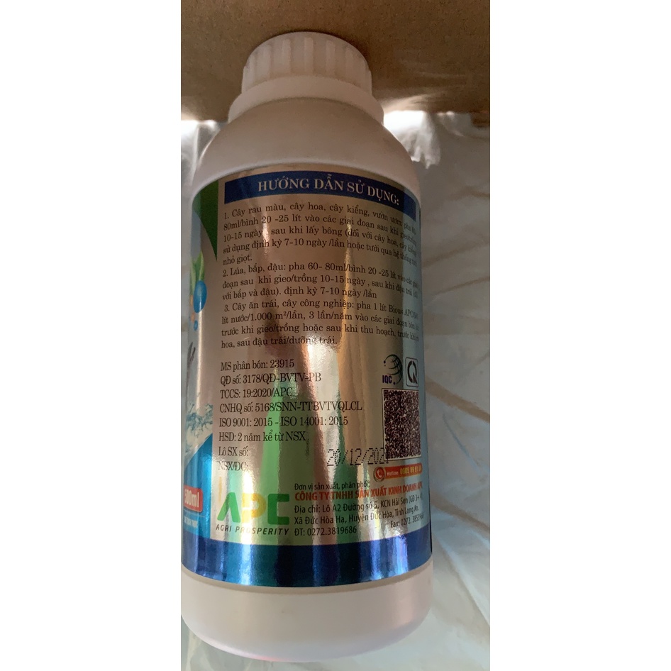 Fish Bio - 500ml | Phân Cá Không Mùi, Không Độc Cho Người Và Môi Trường Phân Cá Không Mùi Fish Bio là chế phẩm tinh khiết đậm đặc được chiết xuất từ cá bằng phương pháp thủy phân giúp cây hấp thụ tức thì. Chất đạm hữu cơ, an toàn cho súc khỏe là những ưu điểm vượt trội của đạm cá thủy phân Phân Cá Fish Bio Giúp cây lớn nhanh, lá xanh và dày. Phân Cá Fish Bio Giúp trái lớn nhanh, mọng nước, tăng hương vị Giúp phì trái, tròn trái, trái nặng, trái – hạt chắc, nặng. Cải tạo đất xấu, đất pha cát và đất bạc màu. Thành phần: Chất Hữu Cơ: 20% Đạm Tổng Hợp: 2% Lân Hữu Hiệu: 1% Kali Hữu Hiệu: 1% Bo: 60ppm Đồng: 50ppm Kẽm: 60ppm Mangan: 50ppm Tỷ lệ C/N: 12 PH:5 Tỷ trọng: 1,1 Phụ gia vừa đủ. Công dụng: Phân Cá Không Mùi Fish Biolà chế phẩm tinh khiết đậm đặc được chiết xuất từ cá bằng phương pháp thủy phân giúp cây hấp thụ tức thì. Chất đạm hữu cơ, an toàn cho súc khỏe là những ưu điểm vượt trội của đạm cá thủy phân. Phân Cá Fish BioGiúp cây lớn nhanh, lá xanh và dày. Phân Cá Fish BioGiúp trái lớn nhanh, mọng nước, tăng hương vị Giúp phì trái, tròn trái, trái nặng, trái – hạt chắc, nặng. Cải tạo đất xấu, đất pha cát và đất bạc màu. Mùi của phân cá thường rất nặng, việc này ảnh hưởng nhiều đến quá trình sử dụng của người nông dân trong công tác bón phân cho lan và các vườn rau sạch thủy canh tại nhà. với ưu điểm vượt trội tối ưu về khử mùi chúng tôi tin chắc bạn sẽ hài lòng với phân cá hữu cơ này. Hướng dẫn sử dụng: Phân Cá Hữu Cơ Fish Biocó thể sử dụng cho các vườn rau sạch, vườn rau thủy canh. sử dụng với liều lượng như sau: Cây rau màu, cây hoa, cây kiểng, vườn ươm: pha 60-80ml/ Bình 20-25 lít vào các giai đoạn sau khi gieo trồng 10-15 ngày Sau khi lấy bông sử dụng định kỳ 7-10 ngày 1 lần. Lúa, Bắp, Đậu pha 60-80ml