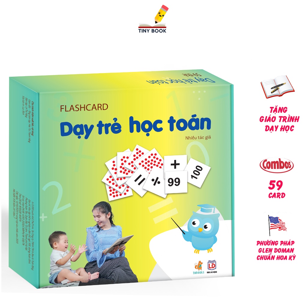 BỘ Thẻ Dạy Trẻ Học Toán - Phát triển tư duy logic cho trẻ từ 0-6 tuổi ( bộ 59 thẻ ) - Dotcard Dạy Trẻ học Toán Glenn Doman 59 thẻ, được thiết kế theo chương trình cơ bản, có mặt trước là chấm tròn đỏ, mặt sau là chữ số tương ứng. Bộ thẻ được thiết kế theo phương pháp Glenn Doman chuẩn Hoa Kỳ. Thông qua cách tráo thẻ nhanh 1 giây/thẻ, bộ thẻ Toán Dot 59 thẻ giúp bé phát triển tư duy logic, khả năng phân tích và xử lý thông tin cực kỳ thông minh bằng não phải. NXB: NXB Lao Động Nội dung bộ thẻ: Bộ Thẻ học Toán Glenn Doman 59 thẻ bao gồm 51 thẻ chấm (thẻ 0-50) và 8 thẻ ký tự: +, -, x, :, ≠, √, >, = Lợi ích của bộ thẻ: - Giúp trẻ phát triển tư duy logic - Rèn luyện sự tập trung, tăng khả năng ghi nhớ - Hiểu được bản chất của toán học và các con số lớn nhỏ khác nhau Độ tuổi áp dụng: Dành cho trẻ từ 0-6 tuổi Chất liệu giấy: - Chất liệu giấy Ivory 350 nhập khẩu từ Phần Lan - Giấy 100% organic an toàn tuyệt đối với sức khỏe của bé. - Bề mặt thẻ phủ lớp chống lóa để bảo vệ thị giác cho bé. Khối lượng: 1kg Kích thước: Thẻ có kích thước 21cm x 21cm Xuất xử : Việt Nam Thông tin về phương pháp Glenn Doman: Glenn Doman là phương pháp giáo dục sớm tại nhà, giúp trẻ phát triển trí thông minh bằng não phải thông qua phương pháp tráo thẻ nhanh. Phương pháp được lấy tên theo giáo sư Glenn Doman, người đi tiên phong trong lĩnh vực phát triển trí tuệ trẻ em. Glenn Doman được áp dụng trên hơn 180 quốc gia, được hàng triệu phụ huynh tin tưởng và lựa chọn. Với phương pháp giáo dục sớm này, trẻ được kích thích các khả năng ghi nhớ nguyên mảng (1 giây/hình ảnh), phân tích, xử lý tư duy logic, kích thích niềm say mê học hỏi, khám phá, tạo tiền đề cho việc định hình tính cách và năng lực sau này. #Flashcard #Dotcard #thehocthongminh #giaoducsom #thehoctoan #thetoandot #phattrientritue #59thedot #GlennDoman #GDKids #TNbooks