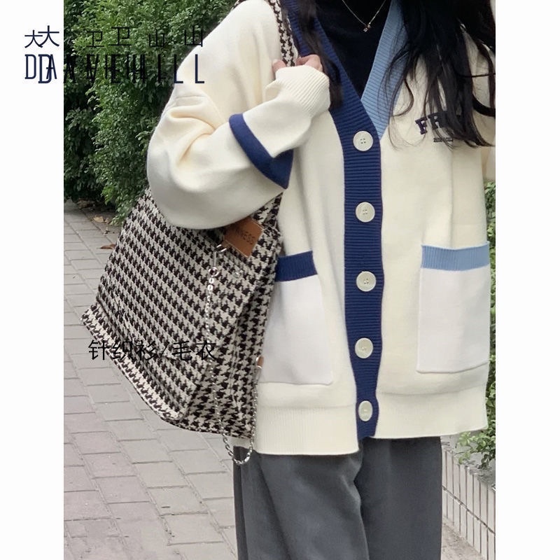 FREESHIP ÁO CADIGAN BE VIỀN NÂU CHỮ THÊU NGỰC