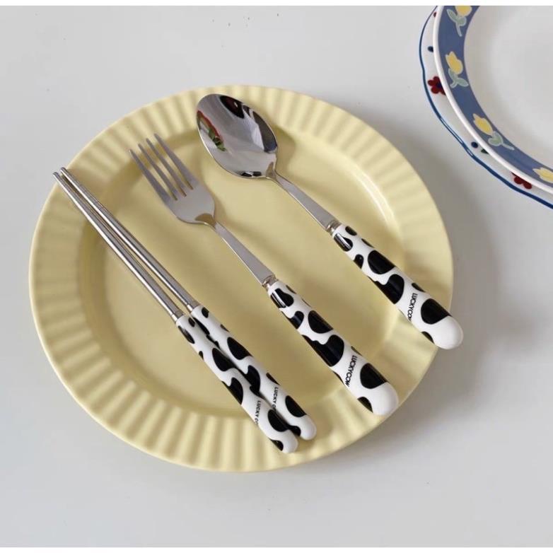 🔥 FREESHIP 🔥 Set Đũa Thìa Cá Nhân Bò Sữa Siêu Xinh