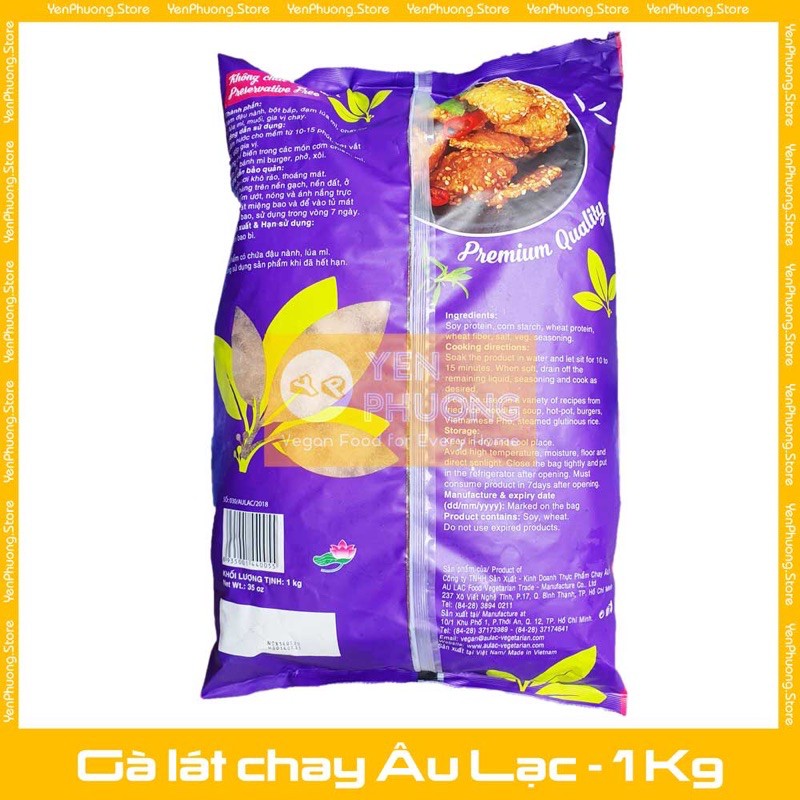 Thương hiệu: Âu lạc Thành phần:Đạm đậu nành, bột bắp, đạm lúa mì, chất xơ từ lúa mì. Cách sử dụng: Ngâm nước cho mềm, vớt vắt ráo, ướp gia vị. Dùng chế biến như: kho, xào, nướng, nấu legou, trộn gỏi, nấu cháo, súp, lẩu, phở, xôi,... Cách bảo quản: Để nơi khô ráo thoáng mát, khi sử dụng chưa hết hãy cột chặt lại miệng bao. Sau khi mở bao, để vào tủ lạnh (không quá 🌡5) Hạn sử dụng : 1 năm