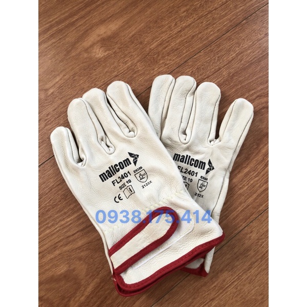 Găng tay da bò model FL2401 Chất liệu: 100% da bò Xuất xứ: Mallcom/ Ấn độ Size 10 Găng tay có bo dán xé ngay cổ tay, giúp ôm trọn đôi tay khi làm việc Da bò dày và mềm, giúp chống nóng, chống đâm, chịu nhiệt.... bảo vệ đôi tay khi làm việc Công dụng: dùng cho thợ hàn tig, hoặc lái xe, thi công, sản xuất..... các công việc cần đến sự bảo vệ đôi tay Hàng nhập khẩu từ ấn độ ( thủ phủ của da), luôn sẵn kho SLL. Quý khách đại lý thương mại, dự án cần mua sll vui lòng liên hệ Hotline Ms.Thoa 0938.175.414