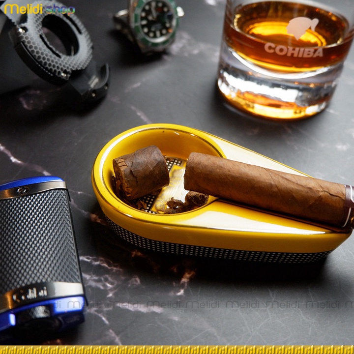 Gạt Tàn cigar Nhỏ Gọn Sang Trọng Bằng Sứ Đế Nhung Trống Xước Mặt Bàn Galiner POP Khe 1 Điếu Cigar Ashtray