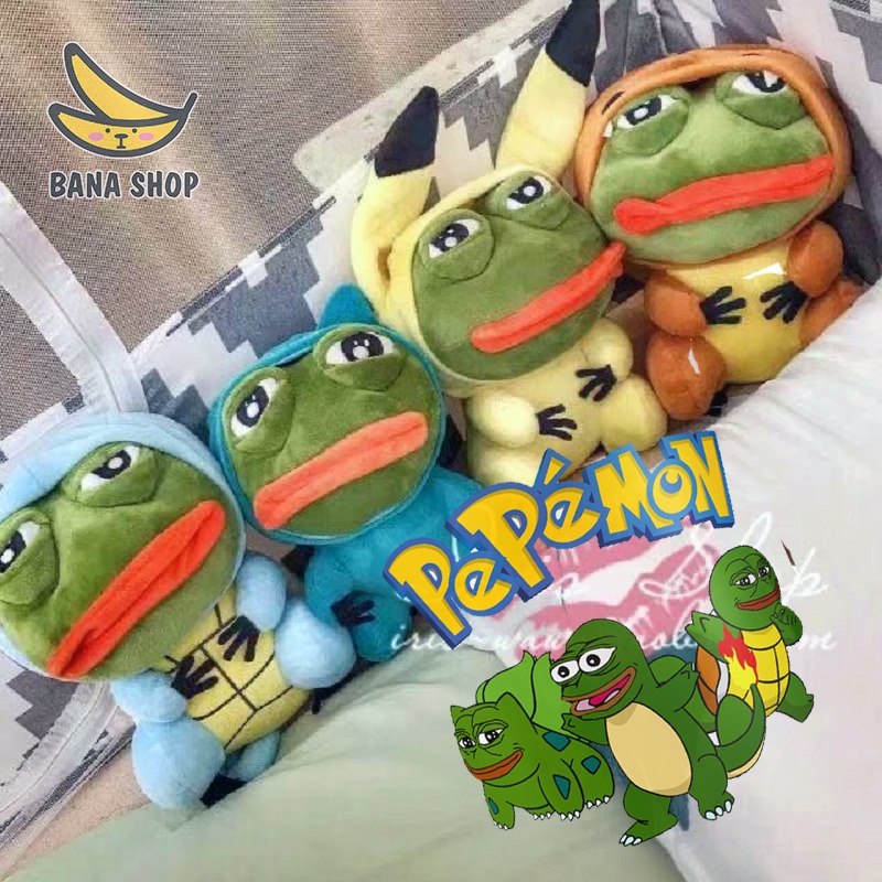 Gấu bông ếch xanh sad frog Pepe cosplay rùa khủng long pikachu Squirtle Charmander siêu bựa dành cho vozer