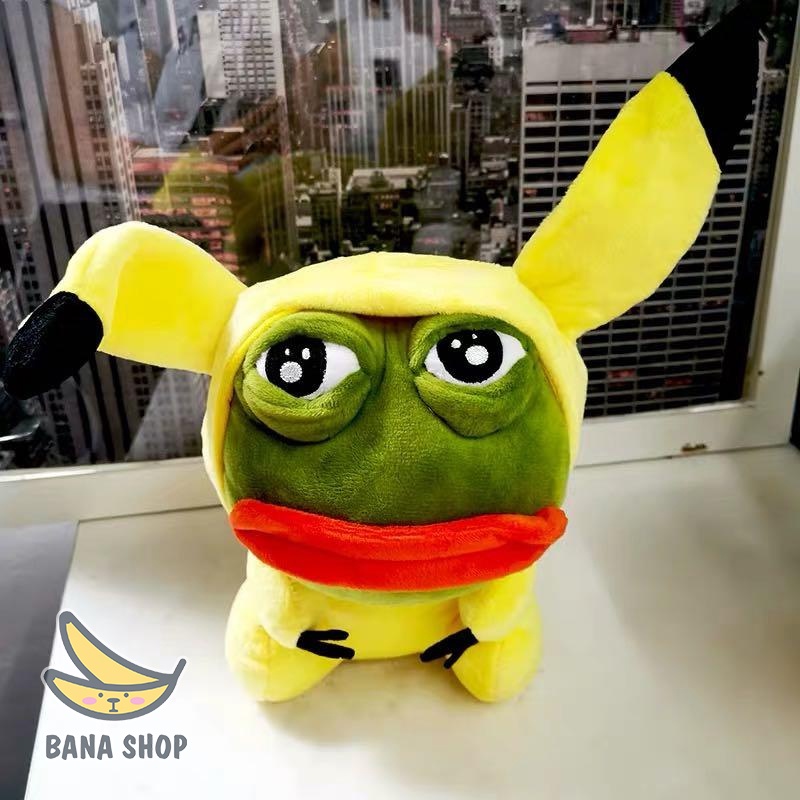 Gấu bông ếch xanh sad frog Pepe mặc áo pikachu vàng siêu bựa dành cho vozer