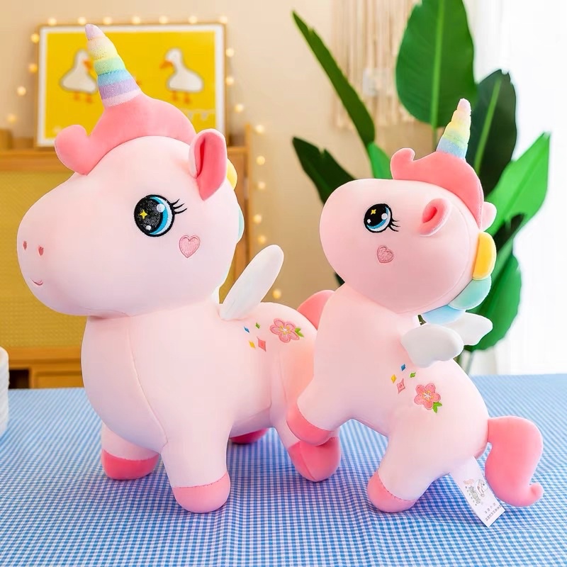 Gấu bông Kỳ Lân -Unicorn Hoa dáng đứng dễ thương ✔ƯU ĐIỂM CỦA SẢN PHẨM: - Gấu bông Unicorn là sản phẩm có đặc tính co dãn 4 chiều, bông nhồi bên trong 100% là bông gòn 3D trắng tinh khiết loại 1 , độ đàn hồi tốt. -Sản phẩm cao cấp chính hãng bền đẹp, an toàn cho n