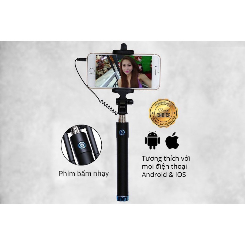 Gậy tự sướng chụp hình selfie jack cắm cho cả Samsung, iPhone, tripod tự sướng