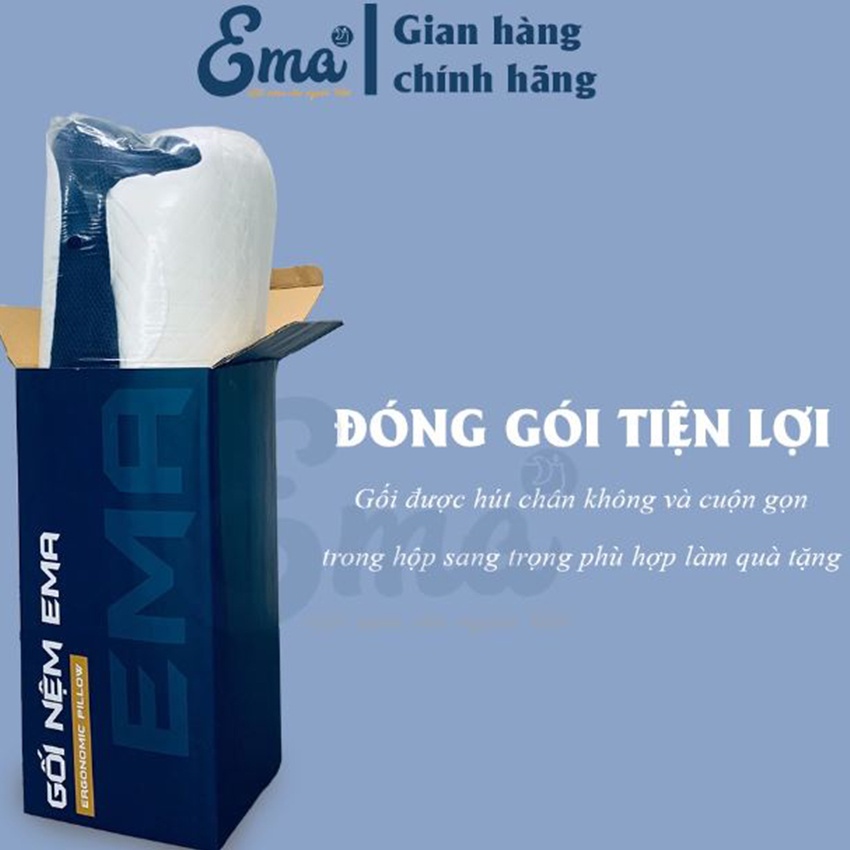 ⚡ ĐIỂM NỔI BẬT CỦA GỐI CÔNG THÁI HỌC EMA - Thiết kế theo công thái học riêng biệt cho 2 tư thế nằm ngửa và nằm nghiêng - Chất liệu cao cấp với ruột gối làm từ Cao su non (Memory Foam) và vỏ gối làm từ vải sinh học Tencel - Kích thước phù hợp với vóc dáng người Việt