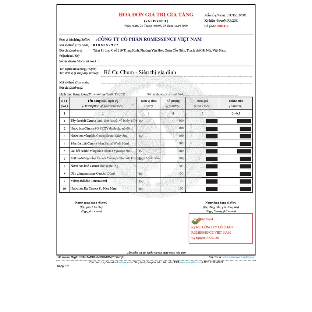 Thông tin sản phẩm gel bôi se khít vùng kín Cenota Orgasmic: Gel bôi se khít vùng kín Cénota Orgasmic Gel của công ty CP Romessence Perfume Việt Nam - Sản xuất tại: nhà máy SX Dược Mỹ Phẩm Vincos Việt Nam - Dung tích: 50 ml Công dụng của gel bôi se khít vùng kín Cen