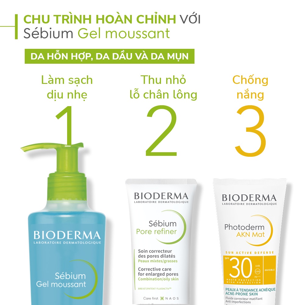 Loại da phù hợp: Da nhờn, da mụn Gel Rửa Mặt Bioderma Sebium Gel Moussant là dòng sản phẩm rửa mặt dạng gel, tạo bọt mịn, êm dịu với làn da, thanh lọc da dầu nhẹ nhàng mà không làm khô da. Công thức độ PH 5.5 giúp làm sạch sâu và cân bằng da hoàn hảo. Bạn sẽ cảm nhận