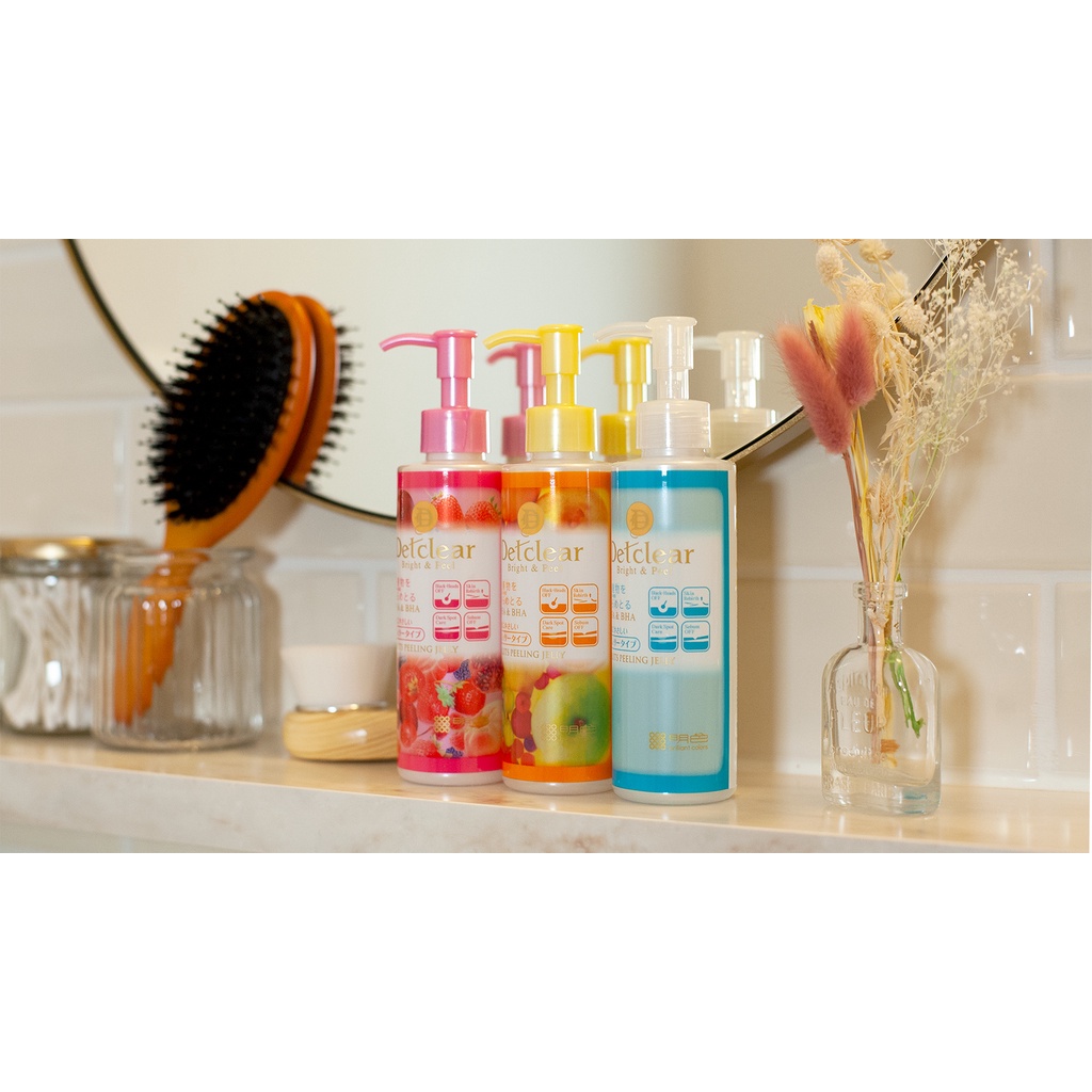 𝐆𝐞𝐥 𝐓𝐚̂̉𝐲 𝐓𝐞̂́ 𝐁𝐚̀𝐨 𝐂𝐡𝐞̂́𝐭 𝐀𝐇𝐀&𝐁𝐇𝐀 𝐃𝐞𝐭𝐜𝐥𝐞𝐚𝐫 𝐁𝐫𝐢𝐠𝐡𝐭 & 𝐏𝐞𝐞𝐥 𝟏𝟖𝟎𝐦𝐥 * 𝐌𝐨̂ 𝐭𝐚̉ 𝐬𝐚̉𝐧 𝐩𝐡𝐚̂̉𝐦: - Là một trong những sản phẩm bán chạy nhất tại thị trường Nhật Bản năm 2015 trong hạng mục peeling gel tẩy da chết. Đã cán mốc 10 triệu chai sản phẩm được bán ra thị trường - Gel Tẩy Tế Bào Chết Detclear Bright & Peel là một dung dịch dạng gel gồm những thành phần cực kỳ lành tính. Detclear có chứa AHA, BHA là thành phần hỗ trợ làm mềm lớp sừng có trên da và loại bỏ lớp da chết đem đến cho bạn làn da trắng sáng, hồng hào. * 𝐓𝐡𝐚̀𝐧𝐡 𝐩𝐡𝐚̂̀𝐧 𝐬𝐚̉𝐧 𝐩𝐡𝐚̂̉𝐦 : - Detclear màu hồng hoàn toàn tinh khiết, với công thức 4 KHÔNG: KHÔNG ALCOHOL - KHÔNG PARABEN - KHÔNG MINERAL OIL - KHÔNG CHẤT HOẠT ĐỘNG BỀ MẶT. - Chứa AHA, BHA hỗ trợ làm mềm lớp sừng có trên da và loại bỏ lớp da chết đem đến cho bạn làn da trắng sáng, hồng hào. - Detclear Mix Fruit với hương hoa quả tự nhiên hoàn toàn dễ chịu, rất mát và nhẹ nhàng. Nhiều người có thể lo lắng mùi hương trái cây sẽ quá hắc hoặc quá giả tạo như kiểu sử dụng toàn hương liệu nhân tạo, nhưng thực ra hoàn toàn không như thế. Các bạn nữ trẻ tầm tuổi 20-25 ở Nhật cực kỳ ưa chuộng mùi hương trẻ trung này. - Detclear màu xanh hoàn toàn tinh khiết, với công thức 6 KHÔNG: không màu, không mùi, không alcohol, không paraben, không mineral oil và không chất hoạt động bề mặt. Dạng gel dịu nhẹ phù hợp với làn da nhạy cảm nhất. * Đ𝐨̣̂ 𝐚𝐧 𝐭𝐨𝐚̀𝐧 - Sản phẩm không chứa paraben * 𝐂𝐚́𝐜𝐡 𝐬𝐮̛̉ 𝐝𝐮̣𝐧𝐠: - Cũng có thể sử dụng ngay trên làn da còn ướt chằng hạn như sử dụng sau khi tắm. - Lấy một lượng (3~5 push) vào tay, tránh tiếp xúc vùng quanh mắt, môi, nhẹ nhàng massage những vùng da mà bạn đang bận tâm. - Sau khi vết bẩn đã được đẩy trôi, thì rửa thật sạch lại bằng nước. - Nên sử dụng trước khi rửa mặt vào buổi sáng từ 1~2 lần/ tuần. * 𝐋𝐨𝐚̣𝐢 𝐝𝐚 𝐩𝐡𝐮̀ 𝐡𝐨̛̣𝐩: Dạng gel dịu nhẹ phù hợp với làn da nhạy cảm.