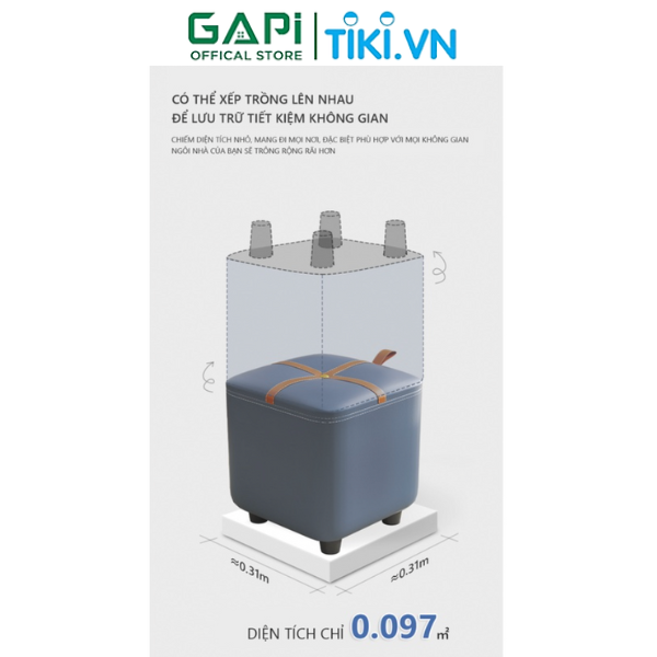 Ghế đôn sofa đa năng phong cách Hàn Quốc bọ đệm êm ái thương hiệu GAPI - GC16 THÔNG TIN SẢN PHẨM - Kích thước: 31x31x33cm - Chất liệu: Mặt ghế bọc da simili cao cấp, nệm mút đàn hồi thoáng khí - Màu sắc: Đa dạng - Sử dụng làm ghế đôn sofa, ghế đôn bàn trà - Bảo hành 12 tháng, đổi trả miễn phí nếu nhận hàng không giống mô tả.Giá sản phẩm trên Tiki đã bao gồm thuế theo luật hiện hành. Bên cạnh đó, tuỳ vào loại sản phẩm, hình thức và địa chỉ giao hàng mà có thể phát sinh thêm chi phí khác như phí vận chuyển, phụ phí hàng cồng kềnh, thuế nhập khẩu (đối với đơn hàng giao từ nước ngoài có giá trị trên 1 triệu đồng).....