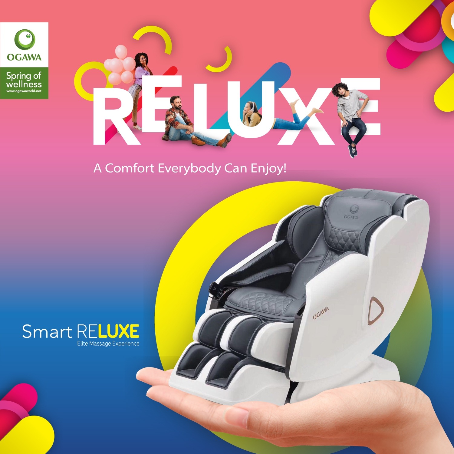 Ghế massage toàn thân OGAWA Smart Reluxe - Tận hưởng sự thư giãn bất tận ngay trong chính không gian sống của bạn.Hãy để Smart Reluxe trở thành chuyên viên massage cá nhân giúp bạn giải tỏa và tái...