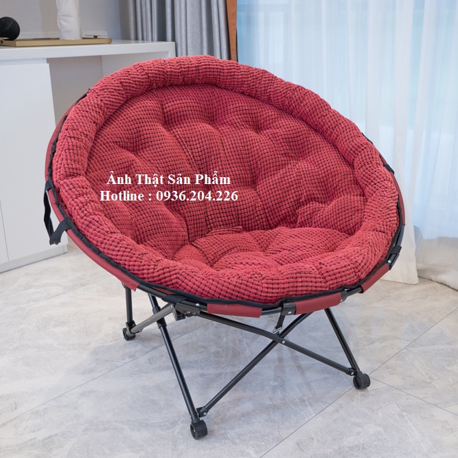 VÌ SAO CHIẾC GHẾ NÀY NÊN THUỘC VỀ BẠN? - Kiểu dáng kinh điển, dễ sử dụng, có thể gập siêu gọn thoải mái mang đi du lịch. - Vibe thư giãn, một sản phẩm must have cho tất cả tín đồ nội thất. - Bảng màu đa dạng, phù hợp với mọi không gian gia đình bạn. - Nệm nhung có thể tháo ròi, dễ dàng vệ sinh khi bẩn. - Cách sử dụng : Chỉ cần nằm thư giãn và tận hưởng cuộc sống ^^ THÔNG TIN SẢN PHẨM : ★ Kích thước : Đường Kính 1.06m ★ Chiều cao: 96cm ★ Đệm ngồi đa dạng màu sắc : Đỏ - Nâu ★ Chân có thể tháo rời, mặt đan lưới, dạng khay ★ Khối lượng : 10kg ★ Chất liệu : Khung thép sơn tĩnh điện, Đệm nhung cao cấp mềm mịn. HƯỚNG DẪN SỬ DỤNG : - Bảo quản sản phẩm nơi khô ráo, thoáng mát hoặc có ánh nắng mặt trời. - Hạn chế tiếp xúc với nước, môi trường ẩm ướt. CHÍNH SÁCH BẢO HÀNH : - Bảo hành 1 đổi 1 miễn phí trong vòng 7 ngày nếu sản phẩm có lỗi do nhà sản xuất. - Bảo hành chất lượng sản phẩm trong vòng 12 tháng. - Chăm sóc & tư vấn trọn đời. Hotline : 0936.204.226
