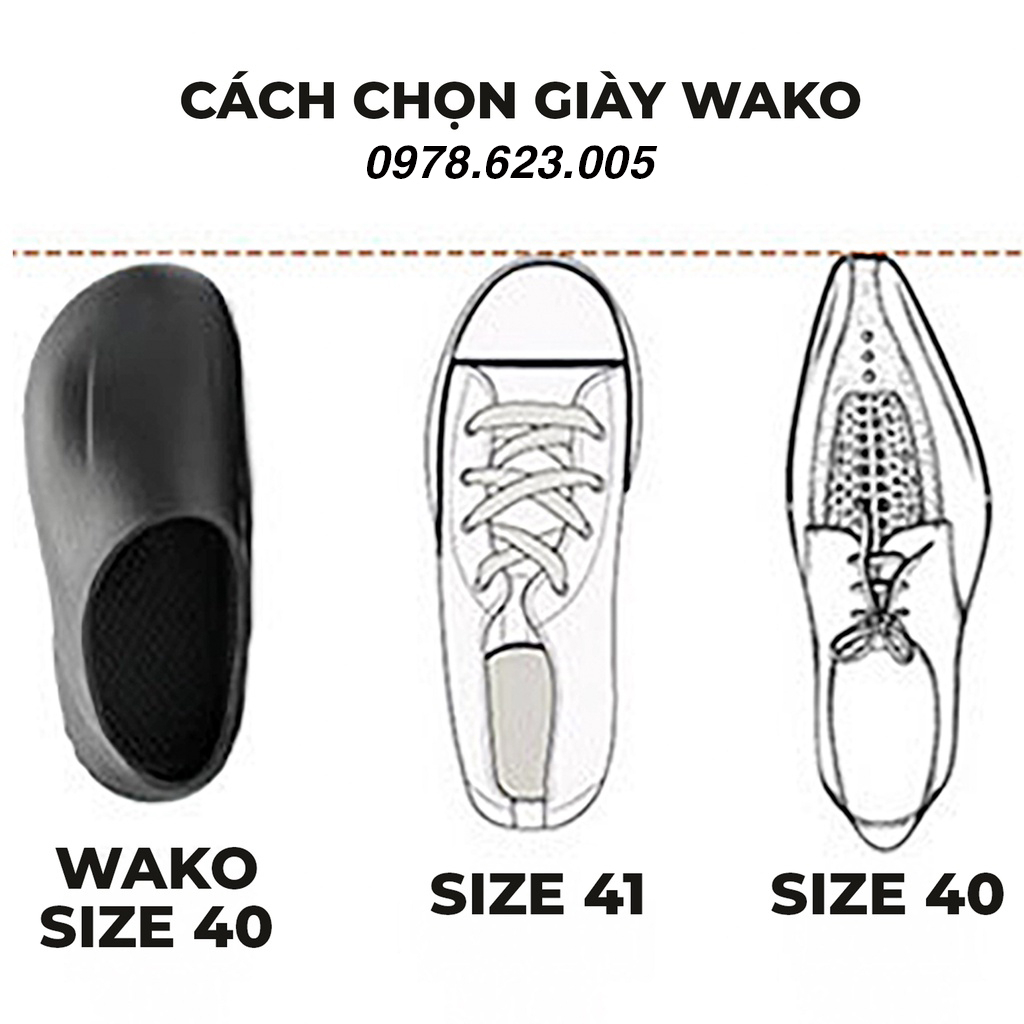 *Lưu ý: Đi lùi 1 size hoặc 2 size và đo chuẩn kích thước theo bảng size ở trên vì giày WAKO rộng hơn giày bình thường. Vì Chefx.vn là Đại Lý duy nhất của WAKO tại Việt Nam nên 1 Số shop không nên coppy phần mô tả của bên mình nhé! CHEFX.VN chuyên cung cấp mẫu giày Đ