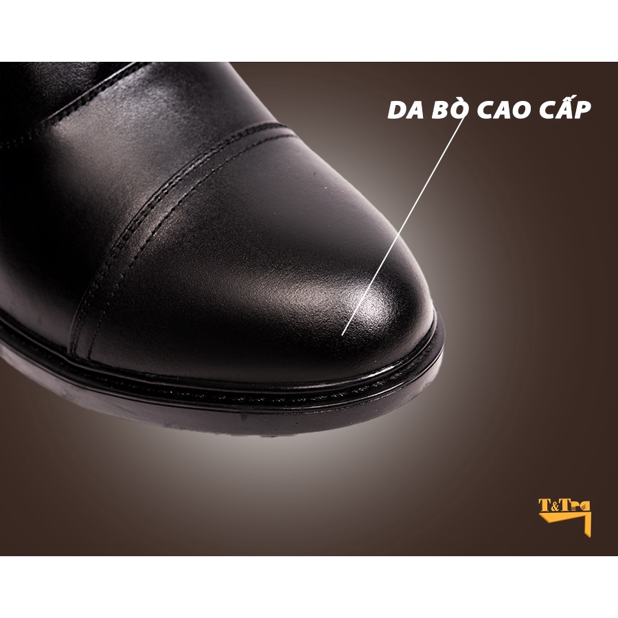 ☑️THÔNG TIN SẢN PHẨM GIÀY ĐỘN NAM T96D - Màu: Đen - Chất liệu: + Đế: cao su đúc + Quai: da bò cao cấp + Lót tăng chiều cao: EVA không hủy + Lớp lót đệm giày độc quyền T&TRA có tính đàn hồi cao, mang lại cảm giác êm chân hơn khi sử dụng. - Tăng cao: 10c