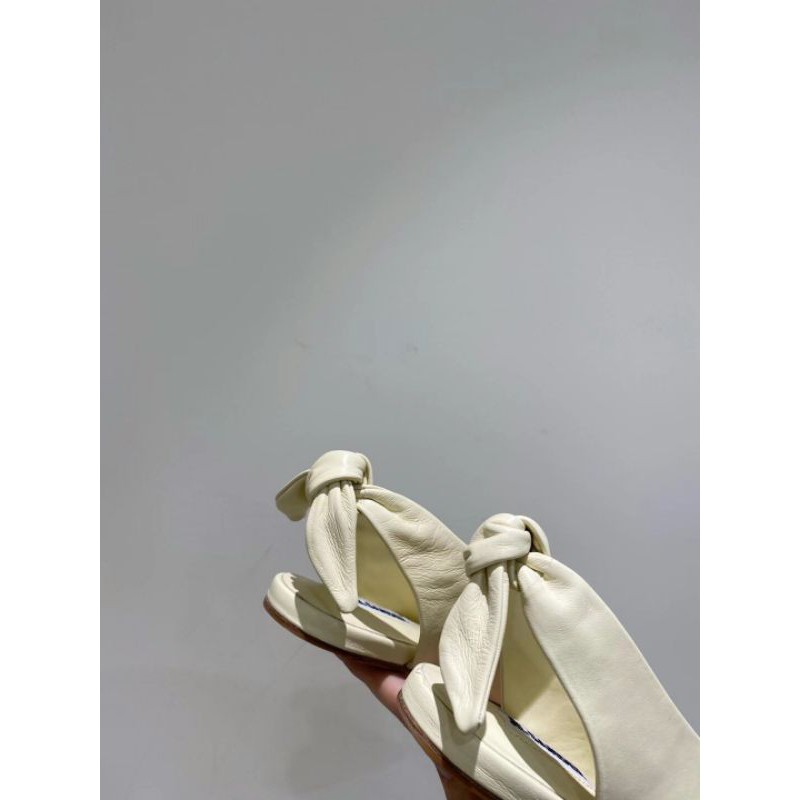 Giày búp bê nữ da thật mũi nhọn quai sau buộc nơ xinh Jil sander
