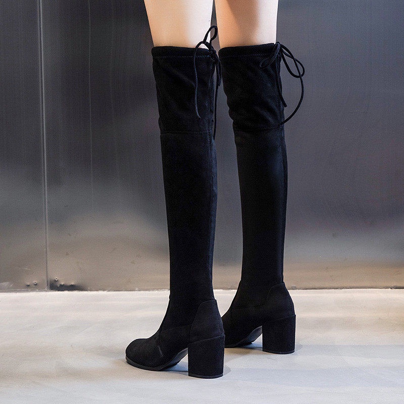 Giày Bốt Cao Gót Cổ Cao Qua Gối Co Giãn Mẫu Mới 2021 E07Over Thời Trang Thu Đông Cho Nữ