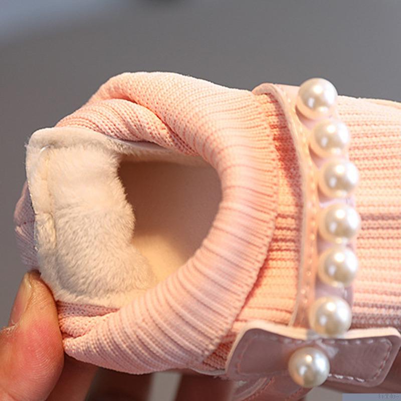 Giày bốt da đế bằng phối ngọc trai nhân tạo thời trang cho bé gái