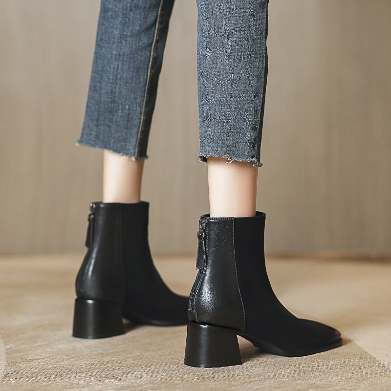 Giày bốt nữ TEA Ankle Boots gót cao 5p da bò lộn mix da mờ - MS0036