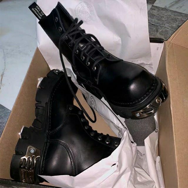 GIÀY BOOTS UNISEX ĐẾ GHIM Hình cuối là chụp thật sp của khách shop nhé. Hàng xịn đế đúc bao đẹp ạ - Màu: đen (đế cao 6 cm) - Size: 34. 35. 36. 37. 38. 39. 40 Chiều dài chân (cm) 35 (22,5 cm) 36 (23 cm) 37 (23,5 cm) 38 (24 cm) 39 (24,5 cm) 40 (25 cm) 💰Giá: #990k ____