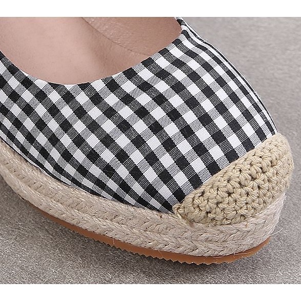 Giày cao gót đế xuồng bọc cói 7cm, họa tiết caro thời trang