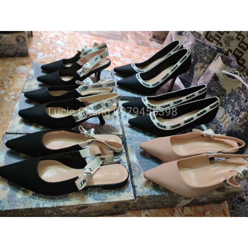 Giày cao gót Dio.rr gót cong viền chữ thêu