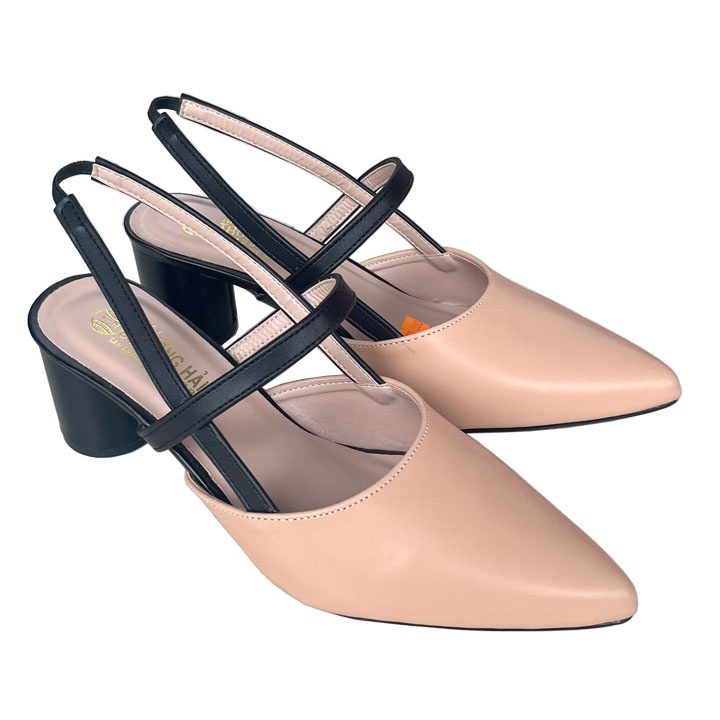 Giày cao gót nữ 6cm màu đen da mềm Trường Hải gót tròn CG125