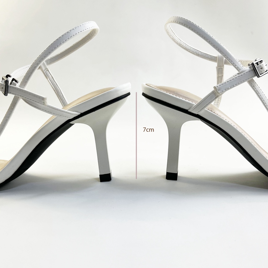 BẢNG THÔNG TIN SẢN PHẨM Phân loại: Giày cao gót 7cm, Quai hậu, dây nhỏ mảnh, xăng đan khóa cài Giới tính: Nữ Độ cao: 7-8 cm Chất liệu quai: Da mềm Chất liệu đế: đế cao su chuyên dùng cho xuất khẩu Phong cách: Cổ điển, tối giản Dịp: Hằng ngày Mùa thích hợp: Bốn mùa ẢN