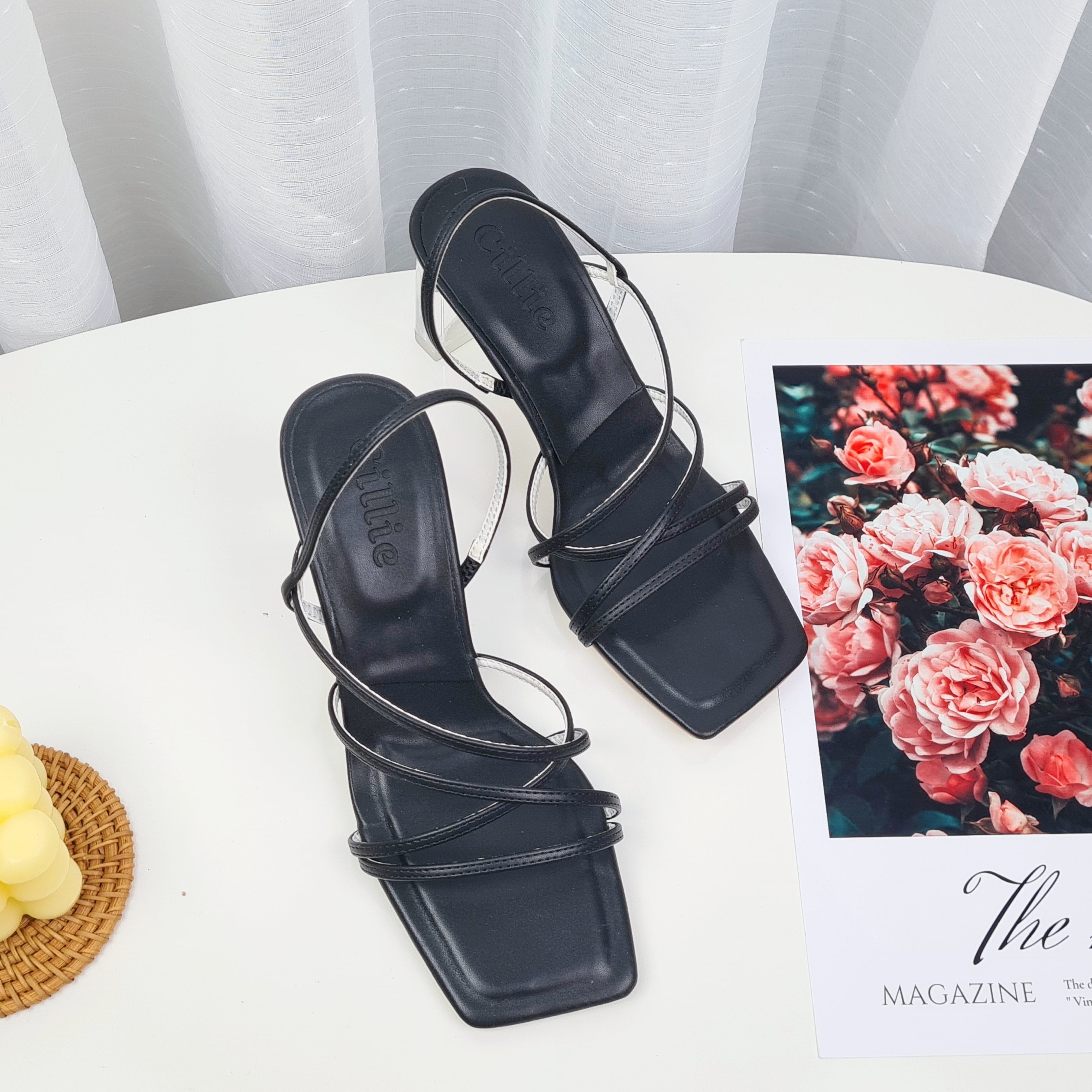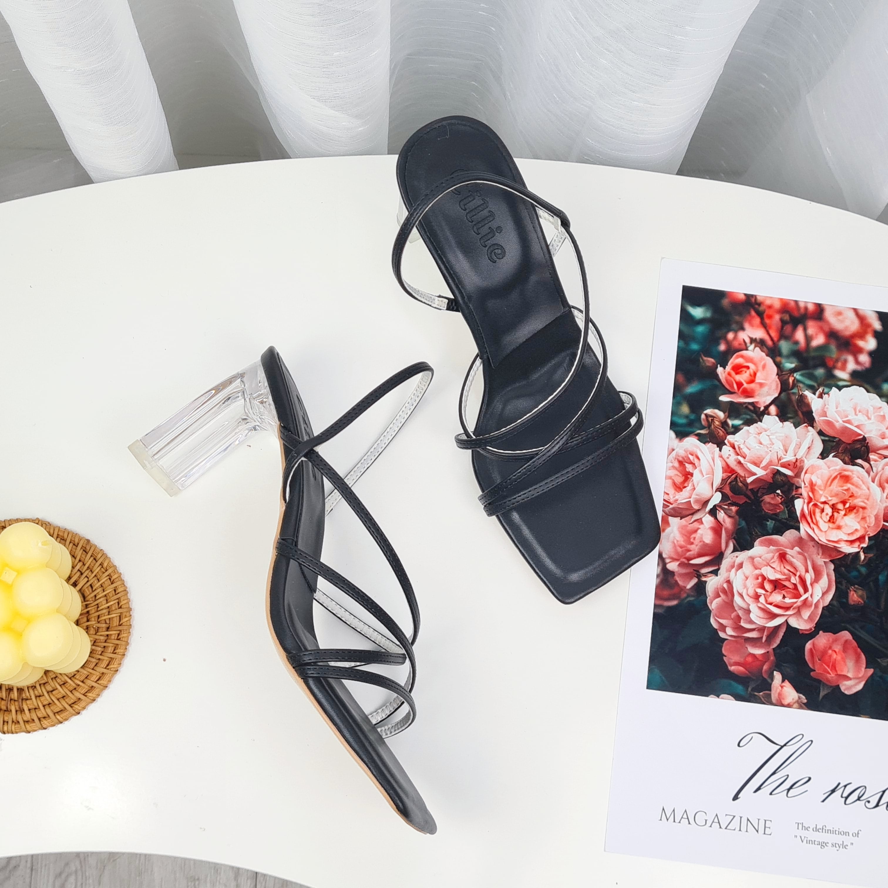 Giày Cao Gót Sandal Dây Mảnh Nữ Cillie Gót Trong Suốt Cao 8p 1029