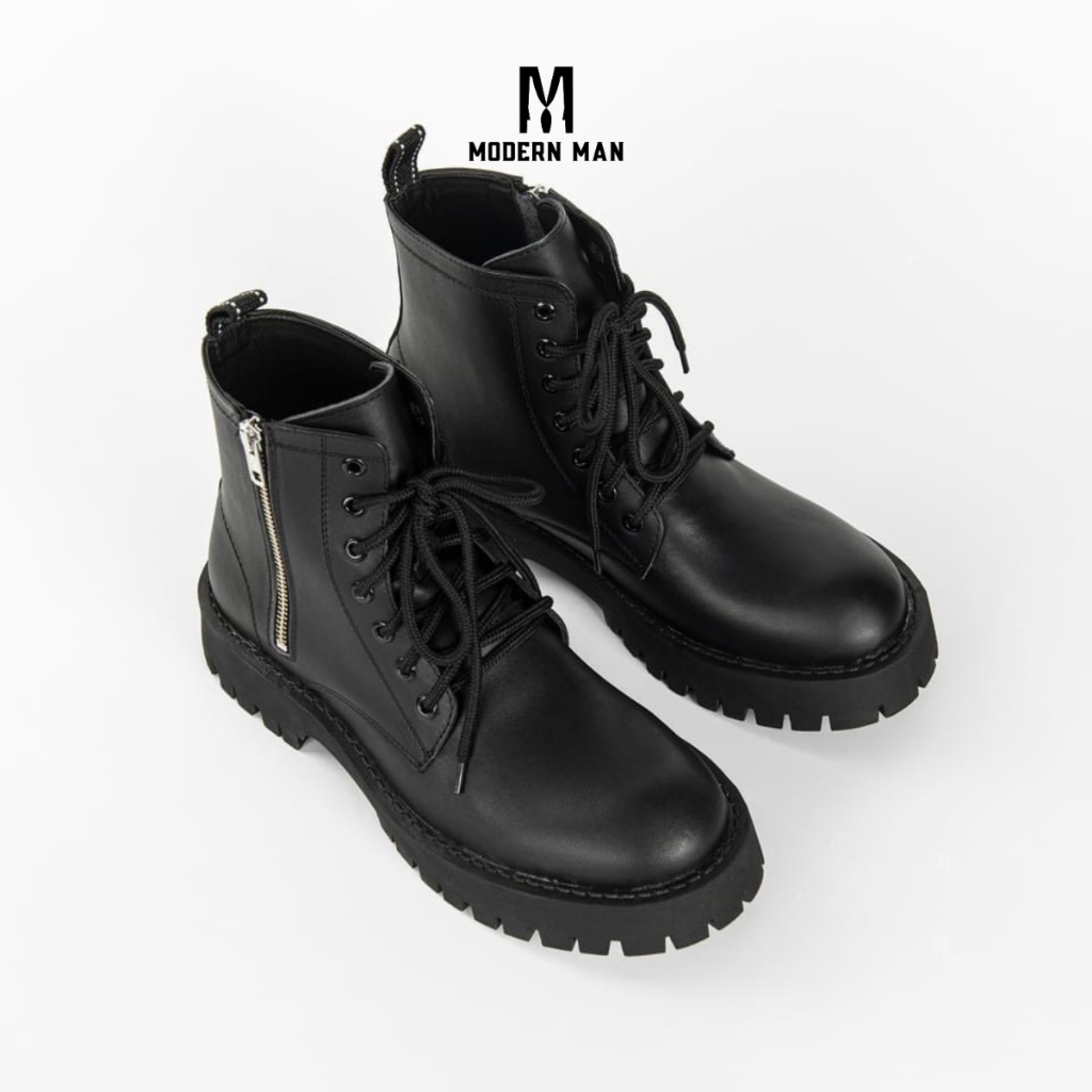 Giày Chunky Combat Boots Nam Da Bò Đế Cao Su Tăng Chiều Cao 5Cm