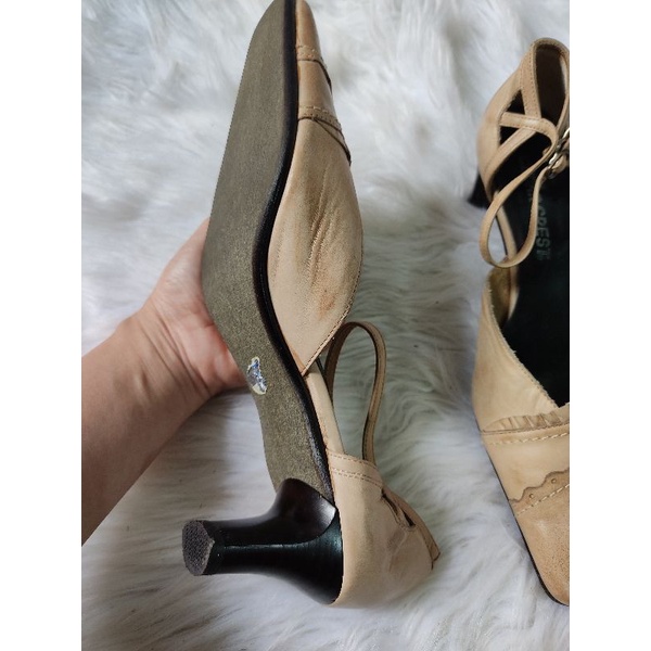Giày cao gót Size 37 Gót cao 5cm Chất liệu: da thật Da mộc nên màu kiểu lên nước vintage. Lót trong da thật mềm, đi êm chân. Màu kiểu thâm đều nên khách hiểu da mộc hãy mua ạ, k thì sẽ chê cũ đấy ạ Giá bán: 220k