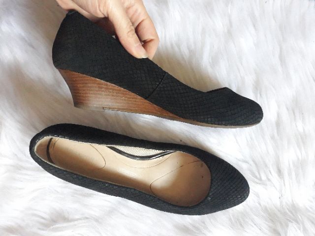Giày đế xuồng Size 37/ đế cao 4p Hiệu : Rockport Chất liệu : da bò dập vân Lót vải đi êm chân. Hiệu này chất lượng rất tốt