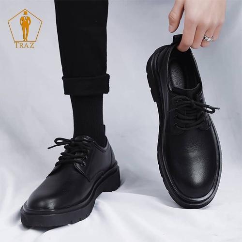 Giày da TRAZ mũi tròn phong cách Nhật Bản thời trang cho nam giày nâng chiều cao nam