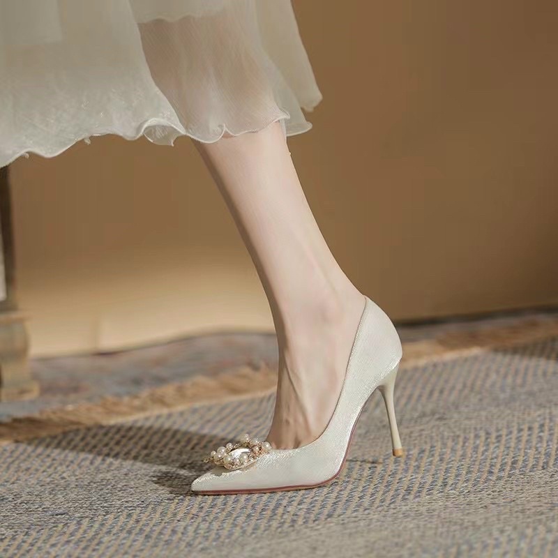 Giày Cao Gót Da Lộn Mũi Nhọn Phong Cách Hàn Quốc Thời Trang Xuân Thu Mới 2023