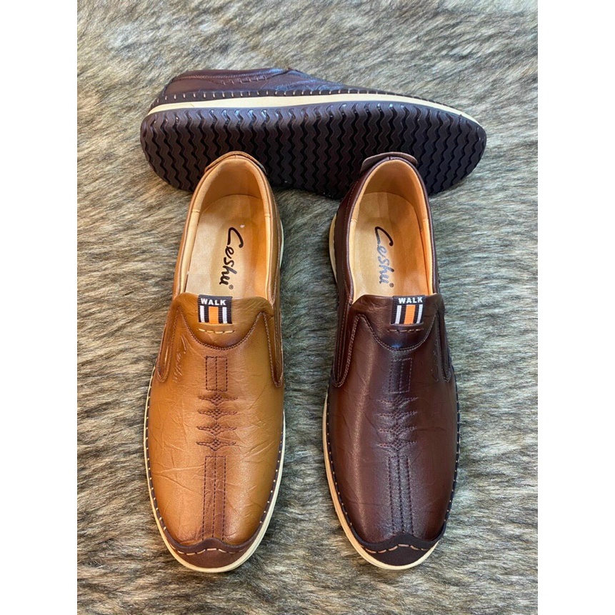 Giày Lười Nam Da bò Cao cấp, đế đúc cao su tự nhiên đã khâu chắc chắn đi êm ôm chân