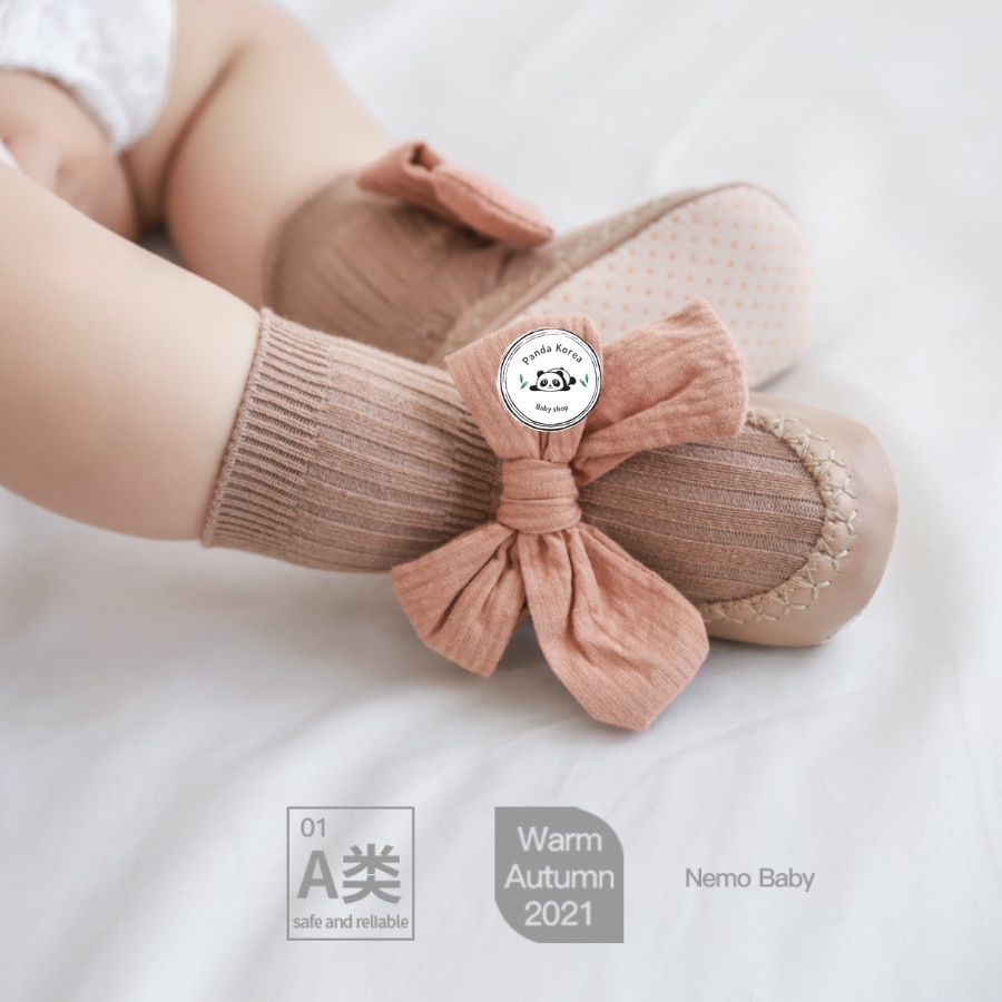 Giày liền tất tập đi cho bé đính nơ phong cách hàn quốc Panda Baby