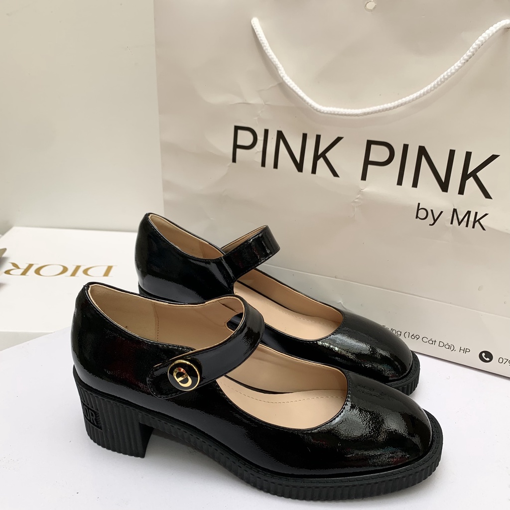 Giày mũi tròn D gót vuông, cao 3p chất da bóng có quai hàng loại 1 mẫu mới